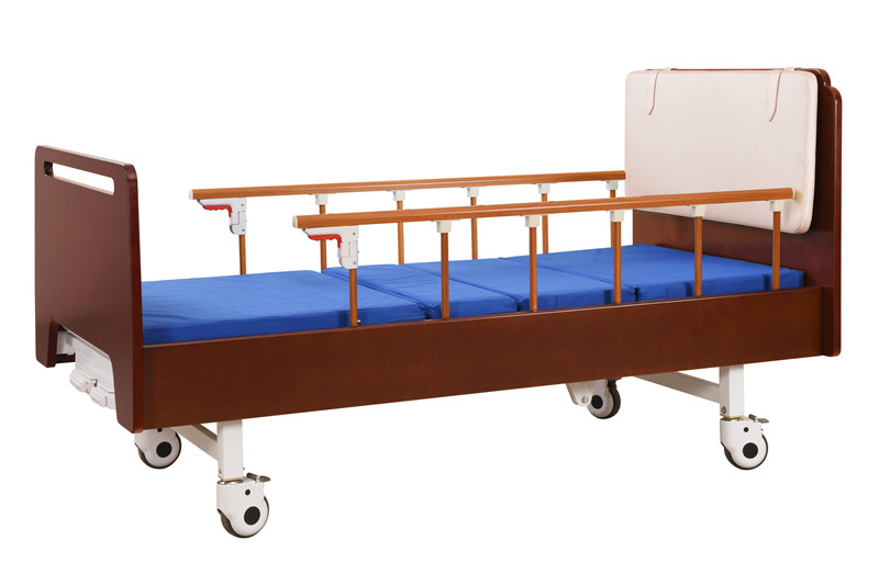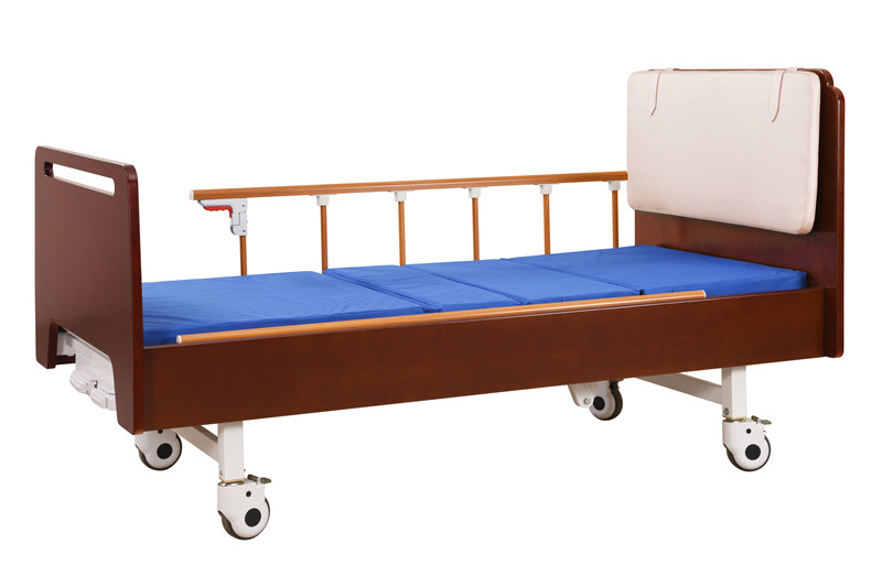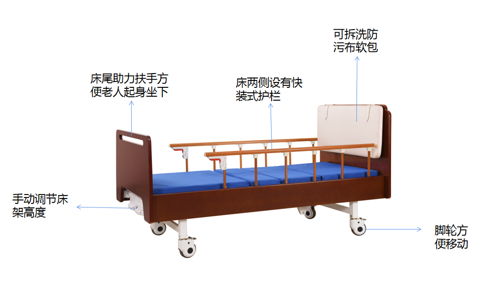 護(hù)理床 基材:為實(shí)木白蠟?zāi)究蚣芙Y(jié)構(gòu) 大圓角設(shè)計(jì),安全,保護(hù)您的老人住戶不易受傷; 床尾可作為扶手使用,還可防止被子掉落等,方便護(hù)理; 床底鏤空設(shè)計(jì),方便清潔地面以及防潮; 實(shí)木框架結(jié)構(gòu),經(jīng)久耐用 手動(dòng)調(diào)節(jié)床架高度