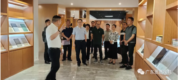 廖董事長(zhǎng)首先向民建各位領(lǐng)導(dǎo)介紹了思進(jìn)家具業(yè)務(wù)及發(fā)展方向,隨后陪同冼聰穎副主委、陳月榮副主委一行參觀了思進(jìn)