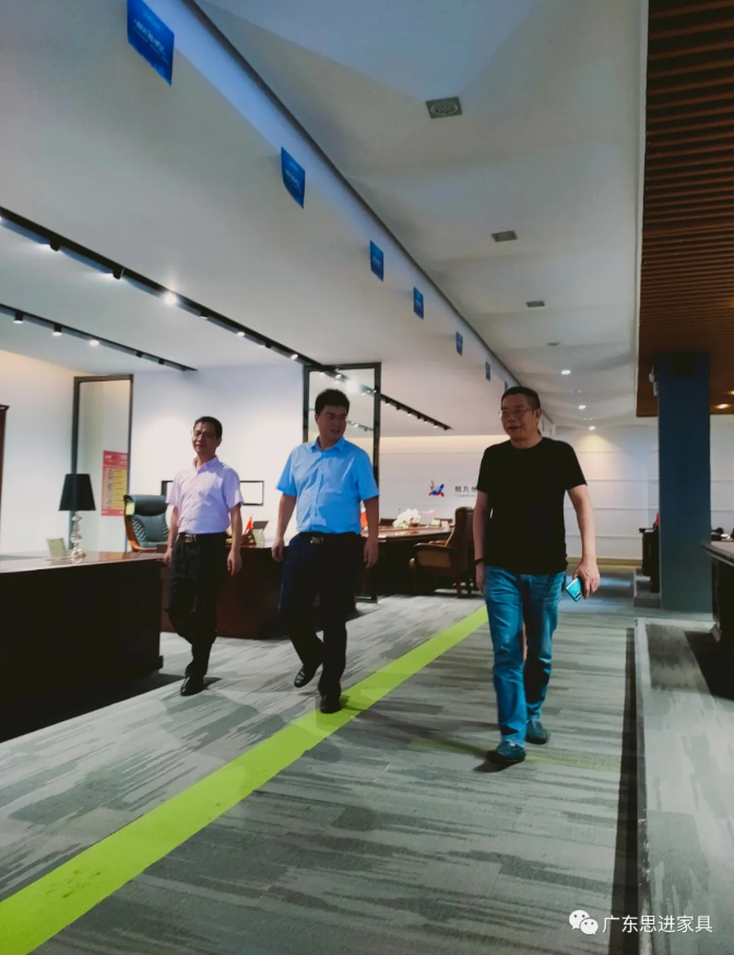 辦公家具重鎮(zhèn)——東升鎮(zhèn)的成功模式進(jìn)行探討交流。隨后廖健程董事長帶領(lǐng)大家參觀了思進(jìn)家具展廳。