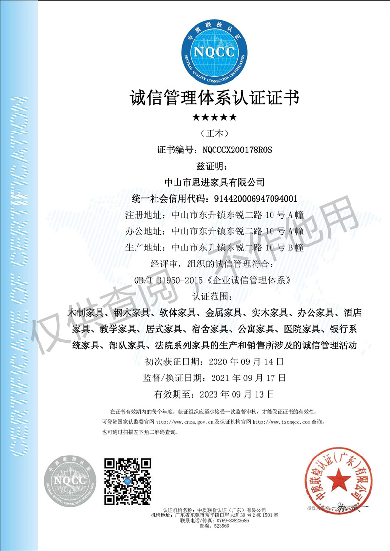 誠(chéng)信管理體系認(rèn)證證書(shū)