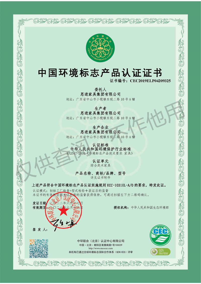 家具產(chǎn)品環(huán)保衛(wèi)士認證證書-金屬家具