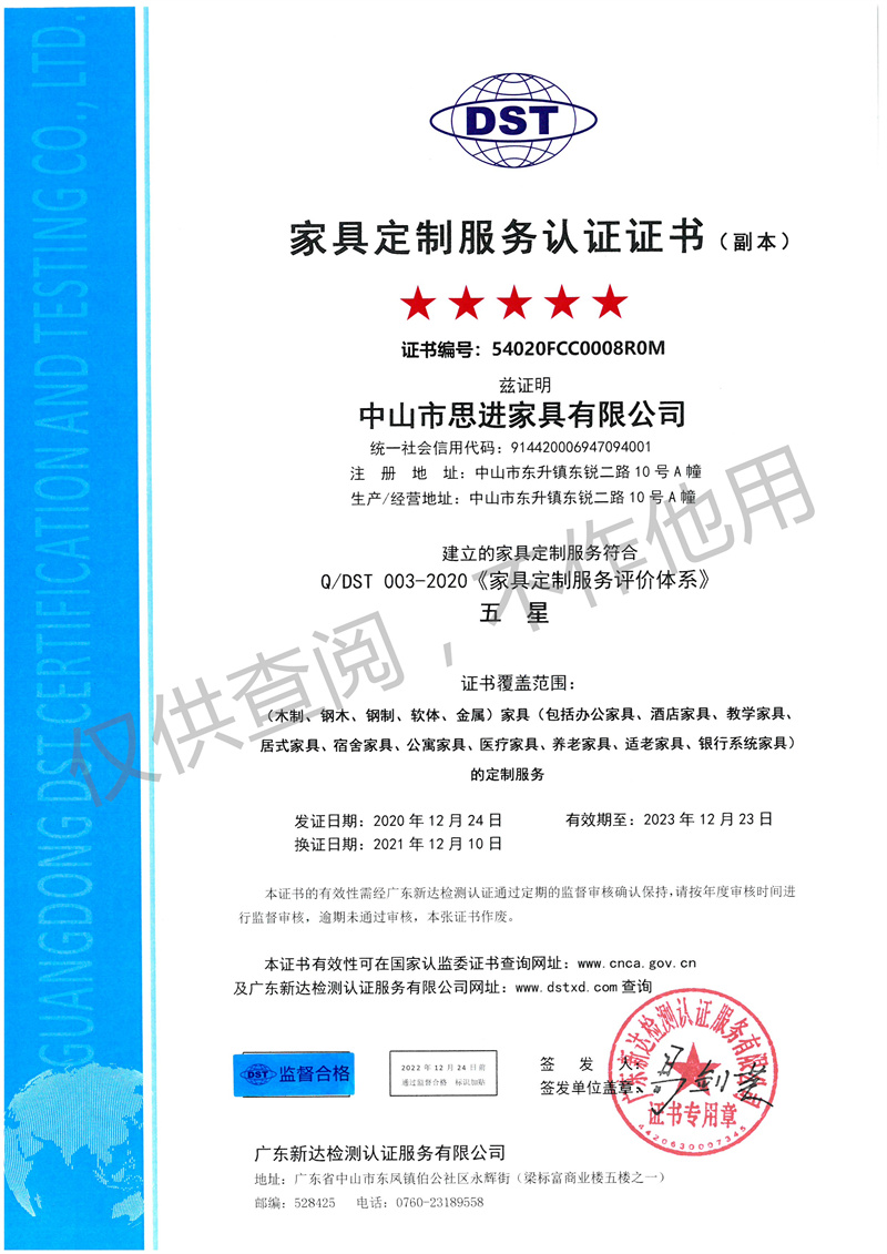 家具產(chǎn)品環(huán)保衛(wèi)士認證證書-軟體家具